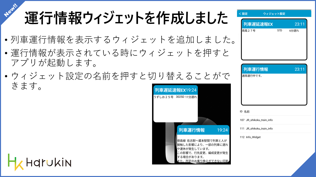 • 列車が遅延しているとテキストが表示されます。押すとアプリが起動するだけのウィジェットです。設定から切り替えるようになってます。