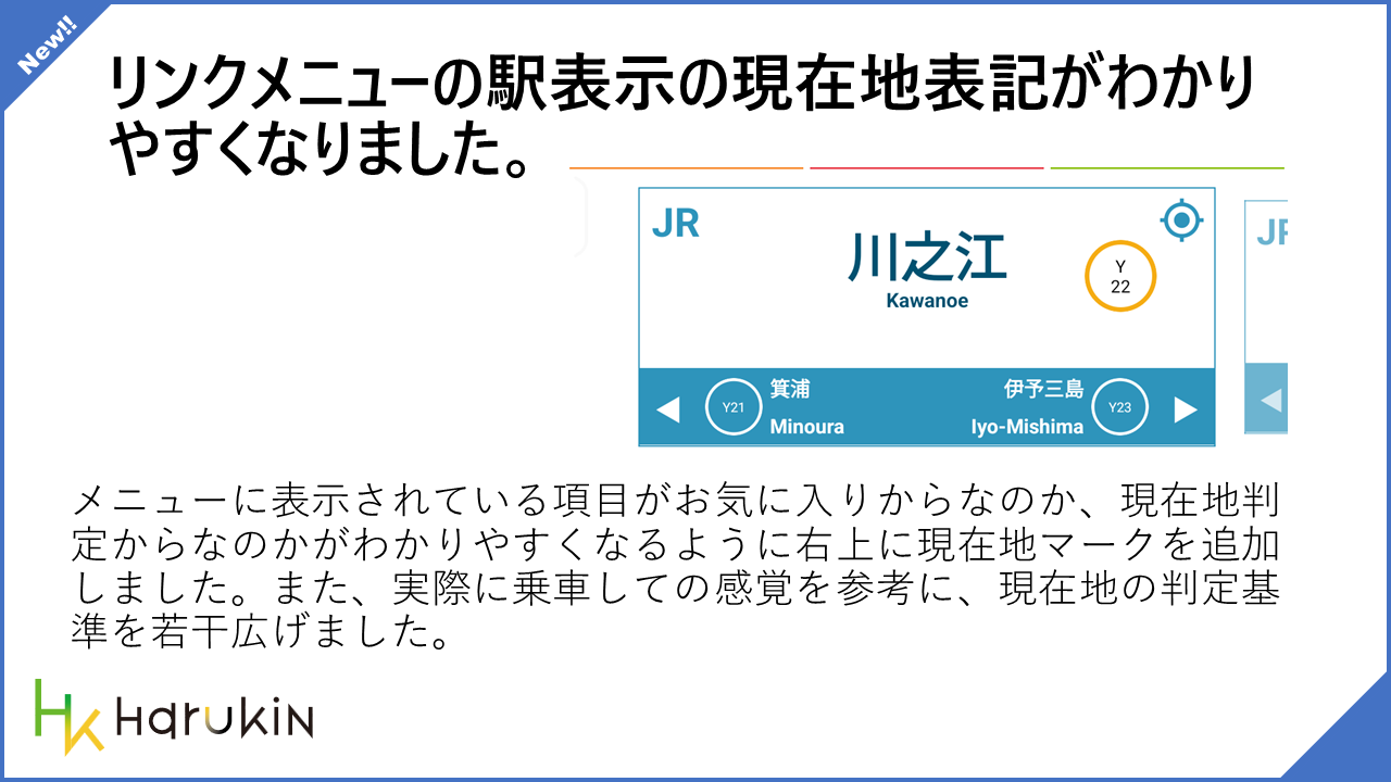 • リンクメニューの駅表示が現在地表示によるものなのか、お気に入り登録をしているからなのかが視覚的にわかるようになりました。
