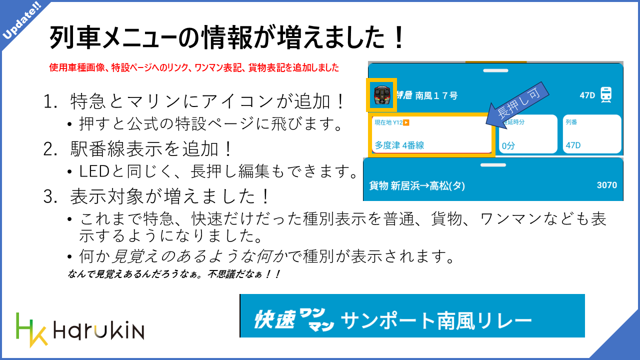 [JR四国非公式アプリ]新機能ニュース ver.5.6 (2025/01/09)